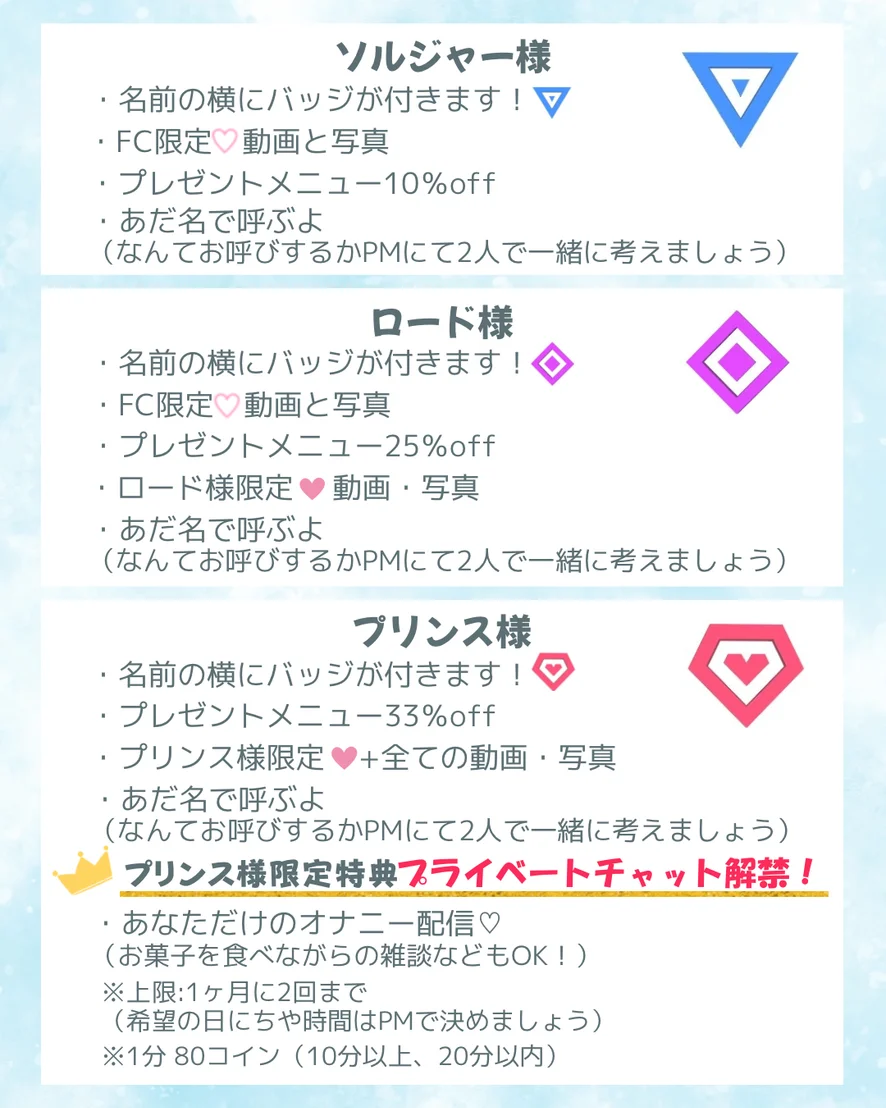 ・配信でのリクエストはプレゼントメニューからお願いします  Please make requests through the gift menu. ・メニューにないリクエストにはお答えできない場合があります  Please note that we may not be able to accommodate requests that are not on the menu. ・不快なコメント、荒らし行為はやめてください。  ブロック、ミュートさせて頂きます。  Please refrain from slander, offensive comments and vandalism Block and mute if you do these things. ※注意 基本私はMですが、優しく虐められるのが好きです♡ 強い口調での命令や馬頭するような虐められ方は嫌いです。 ♡みんなと楽しい配信にしたいのでご協力お願いします🤍